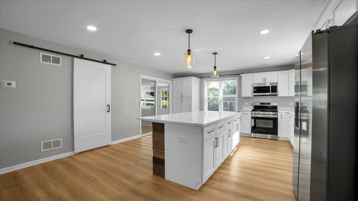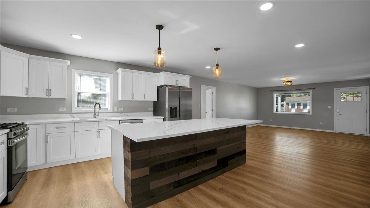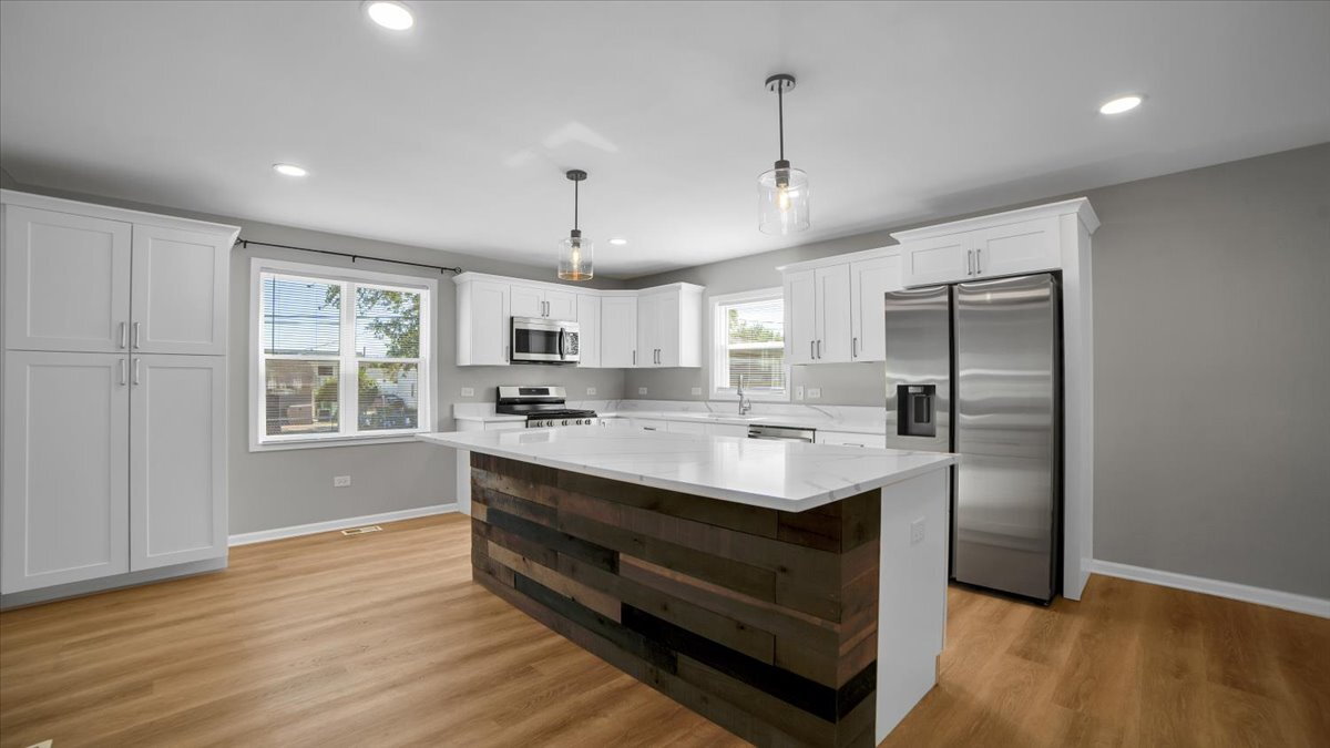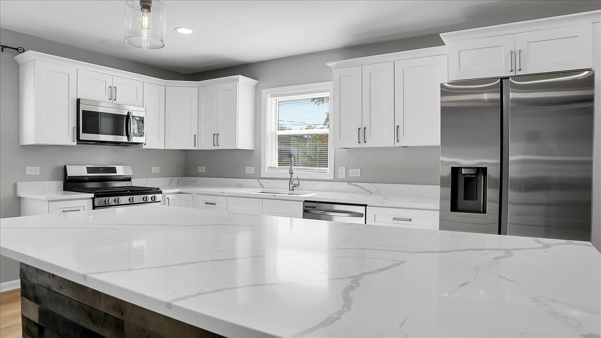 Welcome to this beautifully updated 4-bedroom, 2-bath home featuring an open floorplan with spacious and cozy sunroom overlooking a fully fenced backyard. The modern kitchen boasts brand-new stainless steel appliances, quartz countertops, and soft-close cabinets. Enjoy year-round comfort and plenty of space for entertaining or relaxing. Conveniently located within walking distance to the brand-new Romeo Crossing Park with dog park and playground.