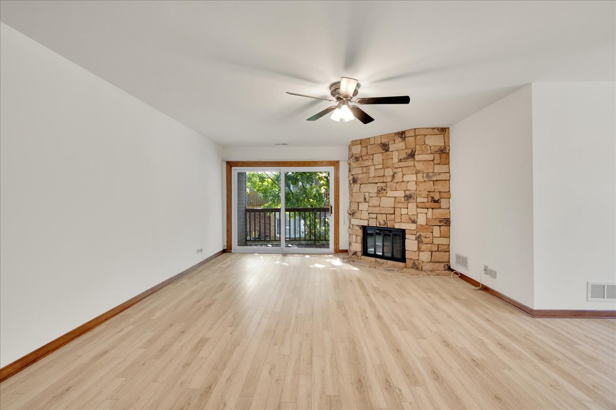This spacious and beautiful 2BR, 2BA condo features a gas fireplace, 2 patio doors, and a beautiful view of the green space below. Boasting in-unit laundry and 2 FULL bathrooms, this condo is just steps away from Naperville North High School. To top it off, the 1 car garage space is included in the rent!